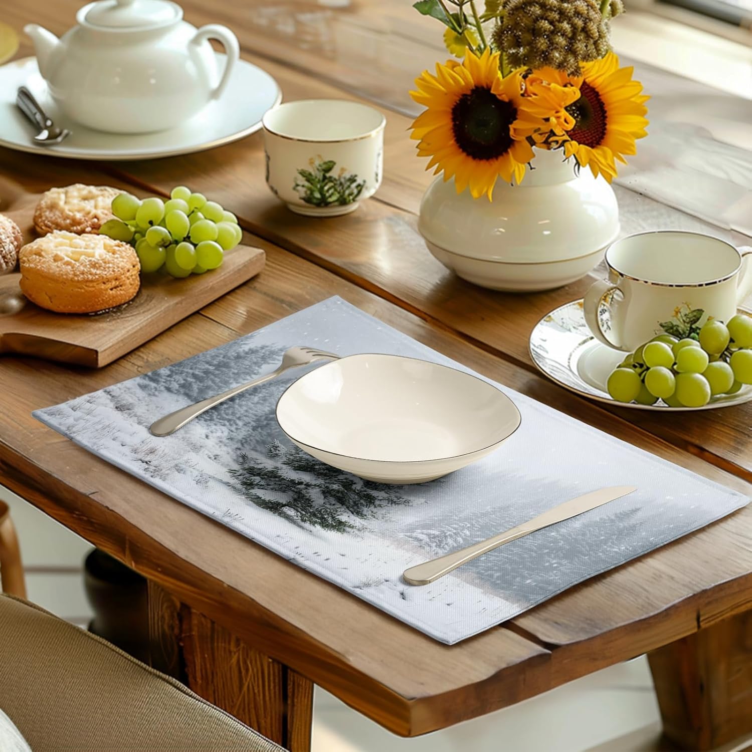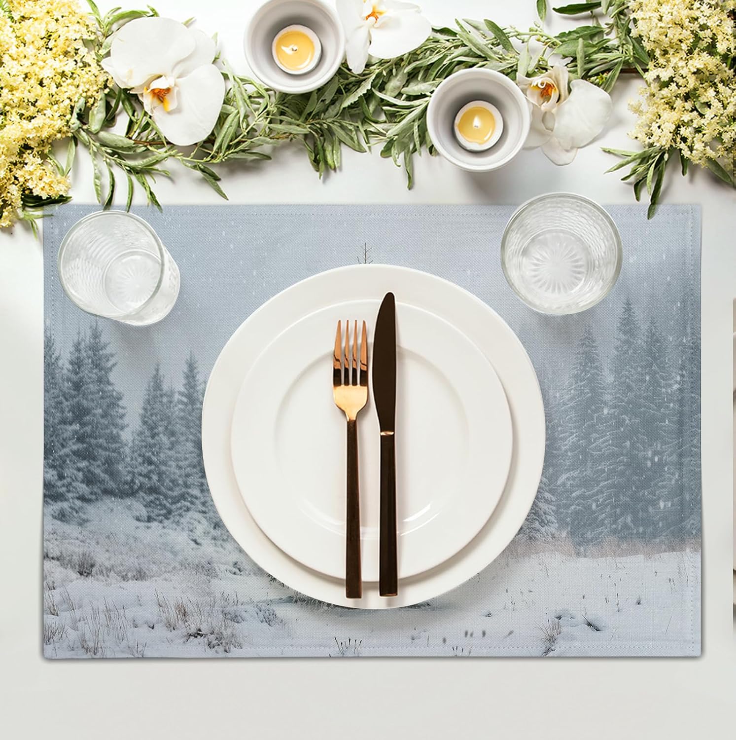 - VERSATILE OCCASIONS: Winter themed table place mats are suitable for different occasions and are an excellent decorative mat for any indoor or outdoor setting, such as kitchens, dining tables, hotels, restaurants, coffee shops, and business offices. They are also a beautiful decoration for banquets, dinners, receptions, housewarming, family gatherings, parties, and leisure kitchens. This will definitely leave a deep impression on the guests