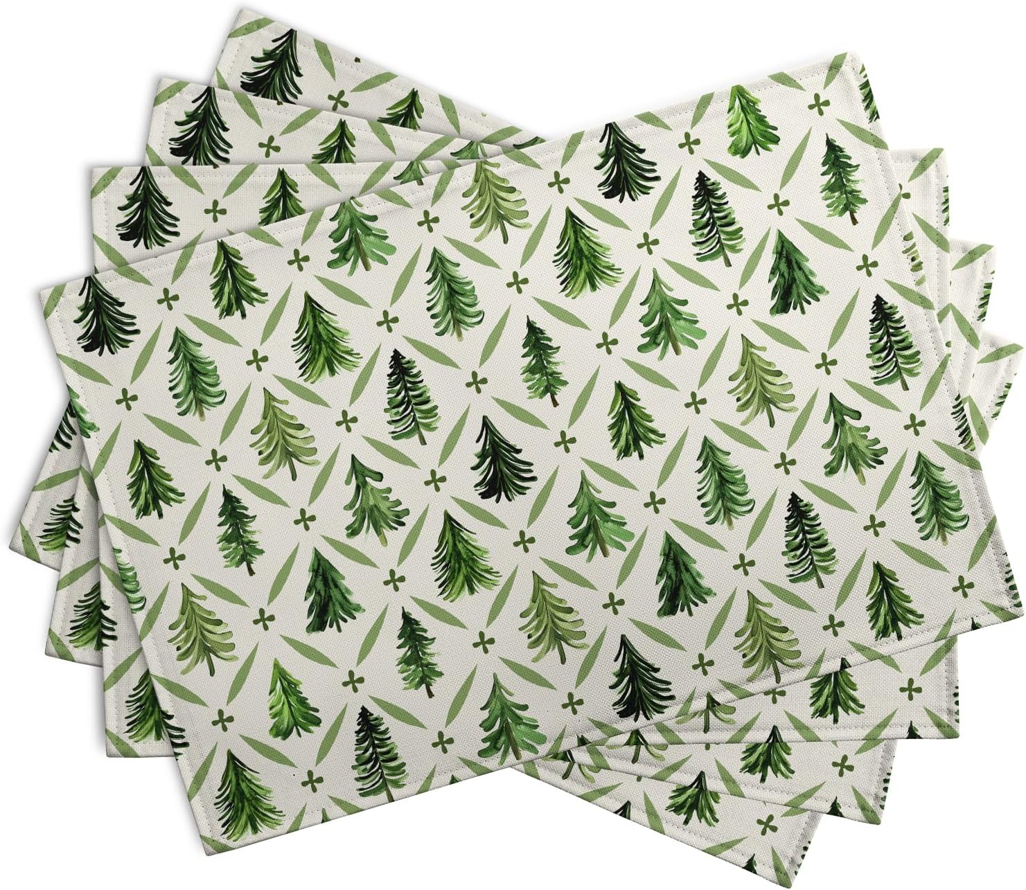 - TABLE DECORATION: Xmas tree placemat feature high-definition printing technology for crisp, clear patterns and vibrant colors; rectangle placemats with a pine tree pattern; unique and eye-catching seasonal patterns add charm to farmhouse table place mats, creating a winter and Christmas atmosphere for your party