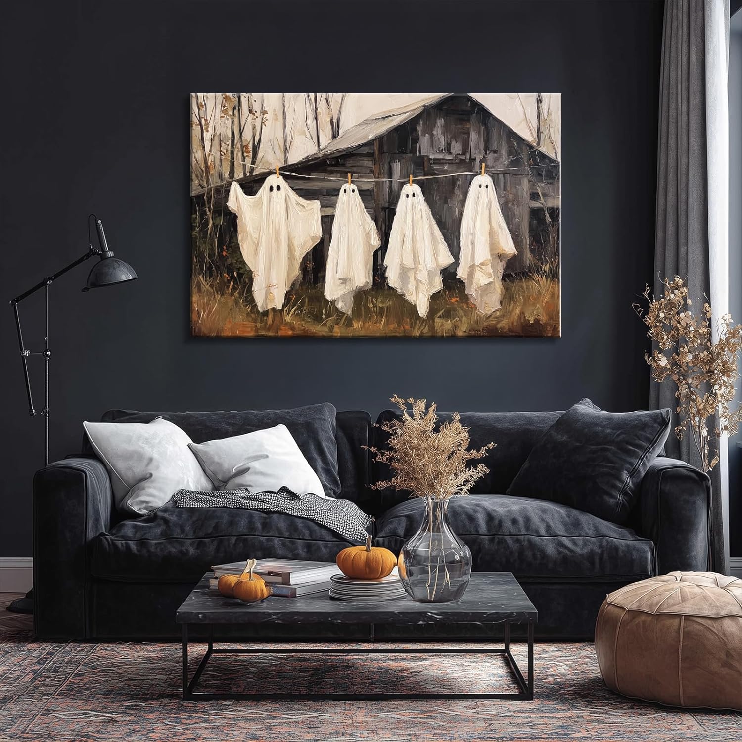 - Halloween Wall Art: This ghost canvas depicts gothic wall decor, adding ghost in it makes the painting more funny. Bring this cute ghost canvas wall art into your home, and it will add a unique touch of color to your living space
