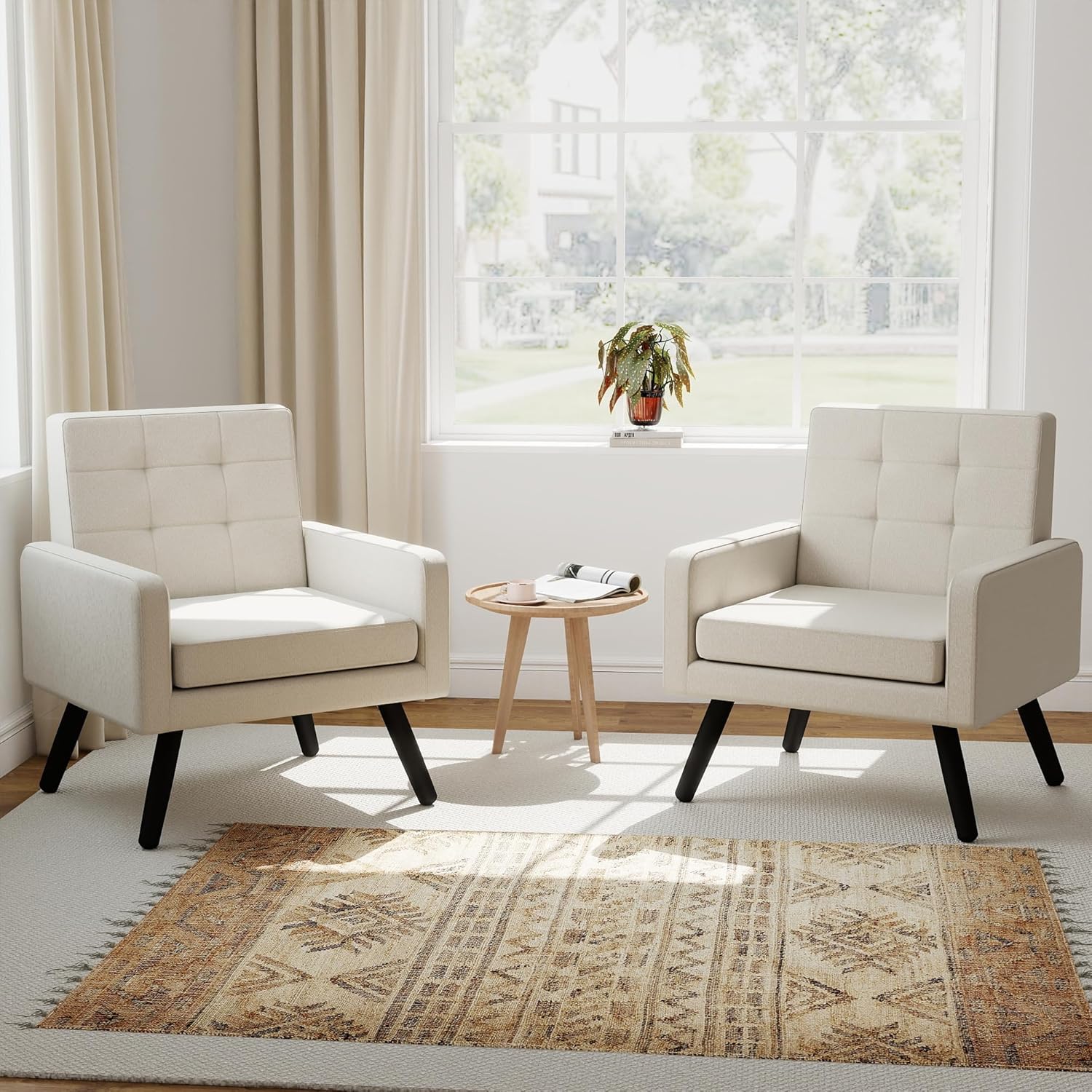 Kromax Mid-Century Modern Accent Chair Set of 2 for Living Room, 496 Lb. Weight Capacity, Dual Armrests, Comfy Extra Large Seat, Timeless Style Perfect for Reading & Relaxing, Beige