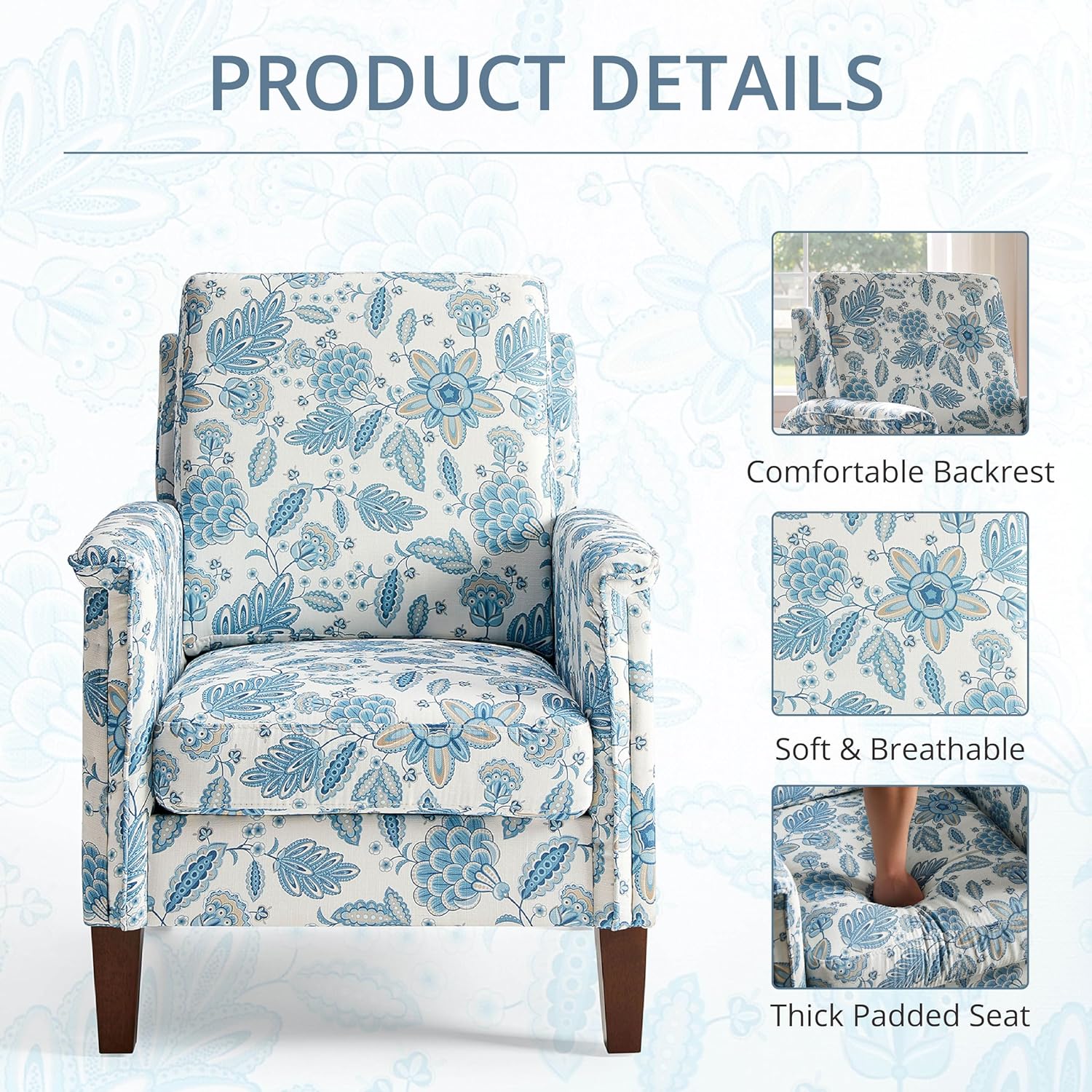 Floral Accent Chair Set of 2, High Back Upholstered Armchair with Solid Wooden Legs, Padded Armrest and Removable Comfortable Cushioned Seat Single Sofa for Living Room, Bedroom, Blue