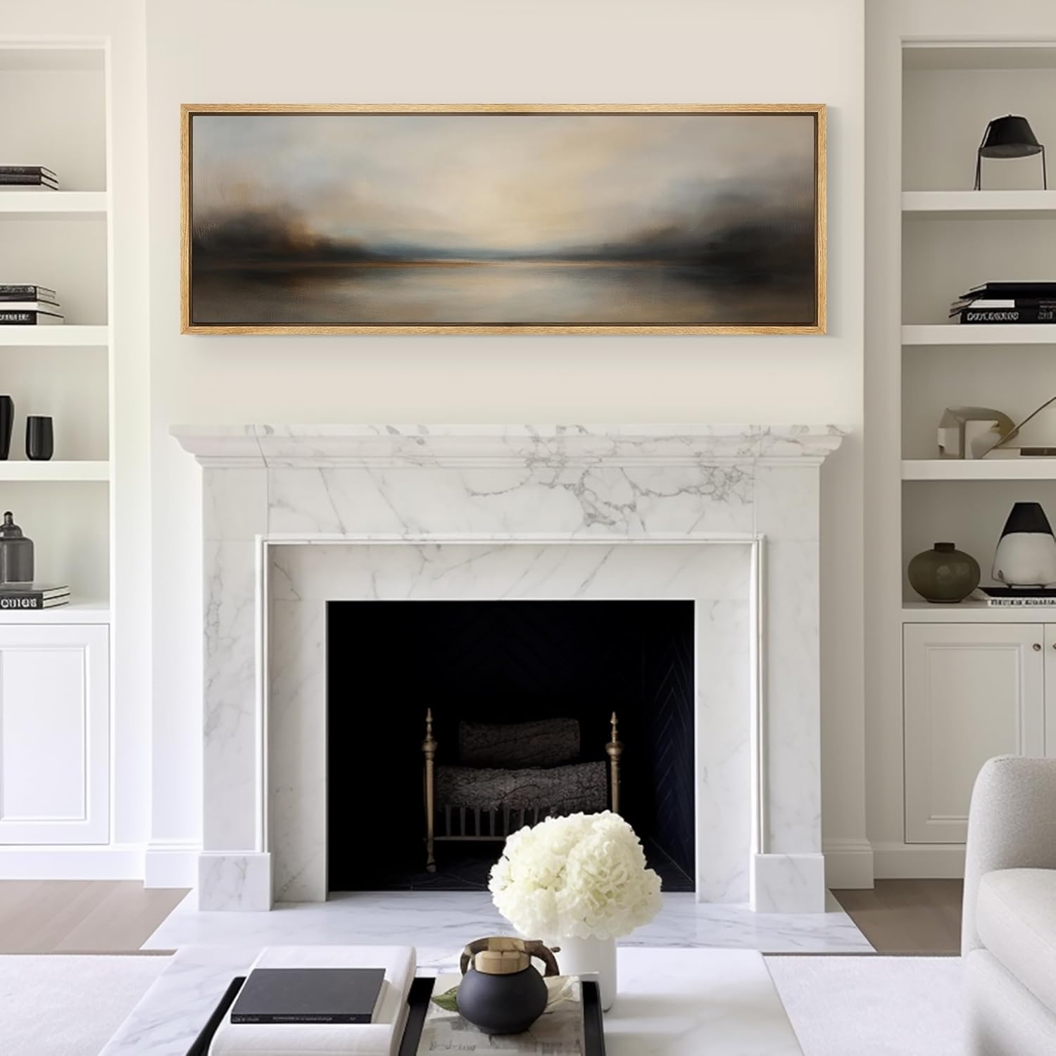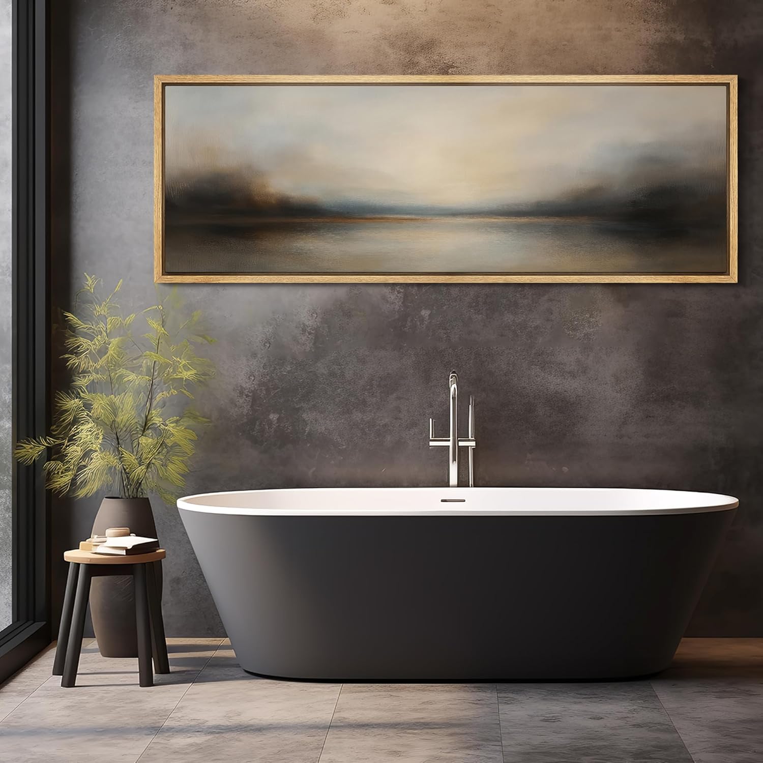 MUDECOR Large Framed Canvas Print Wall Art Abstract Landscape Neutral Tones Misty Horizon Illustrations Decorative Colorful for Bedroom - 60"x20"