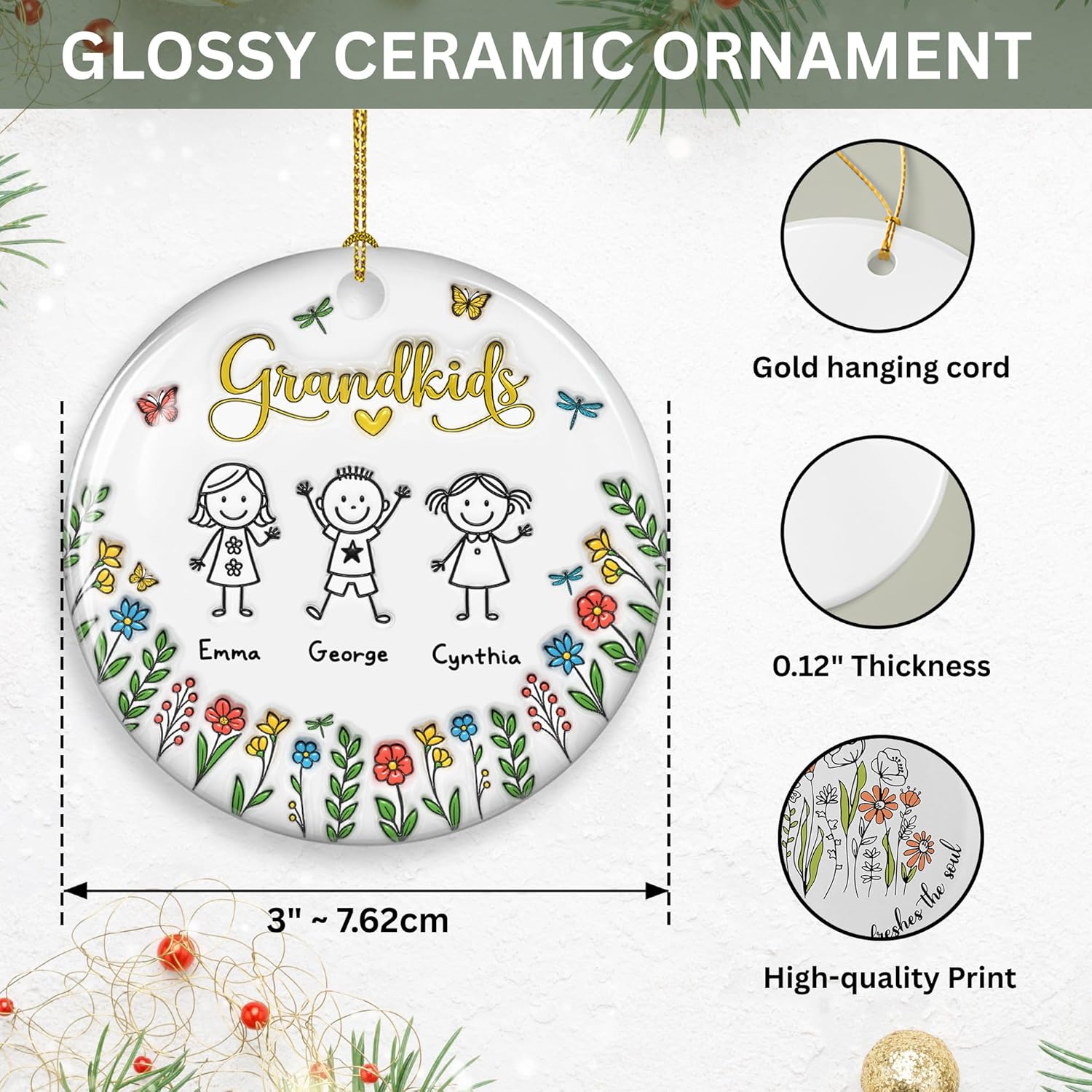 Grandkids Personalized Ceramic Ornament – Grandkids Christmas Ornament, Custom Holiday Keepsake, Family Tree Gift