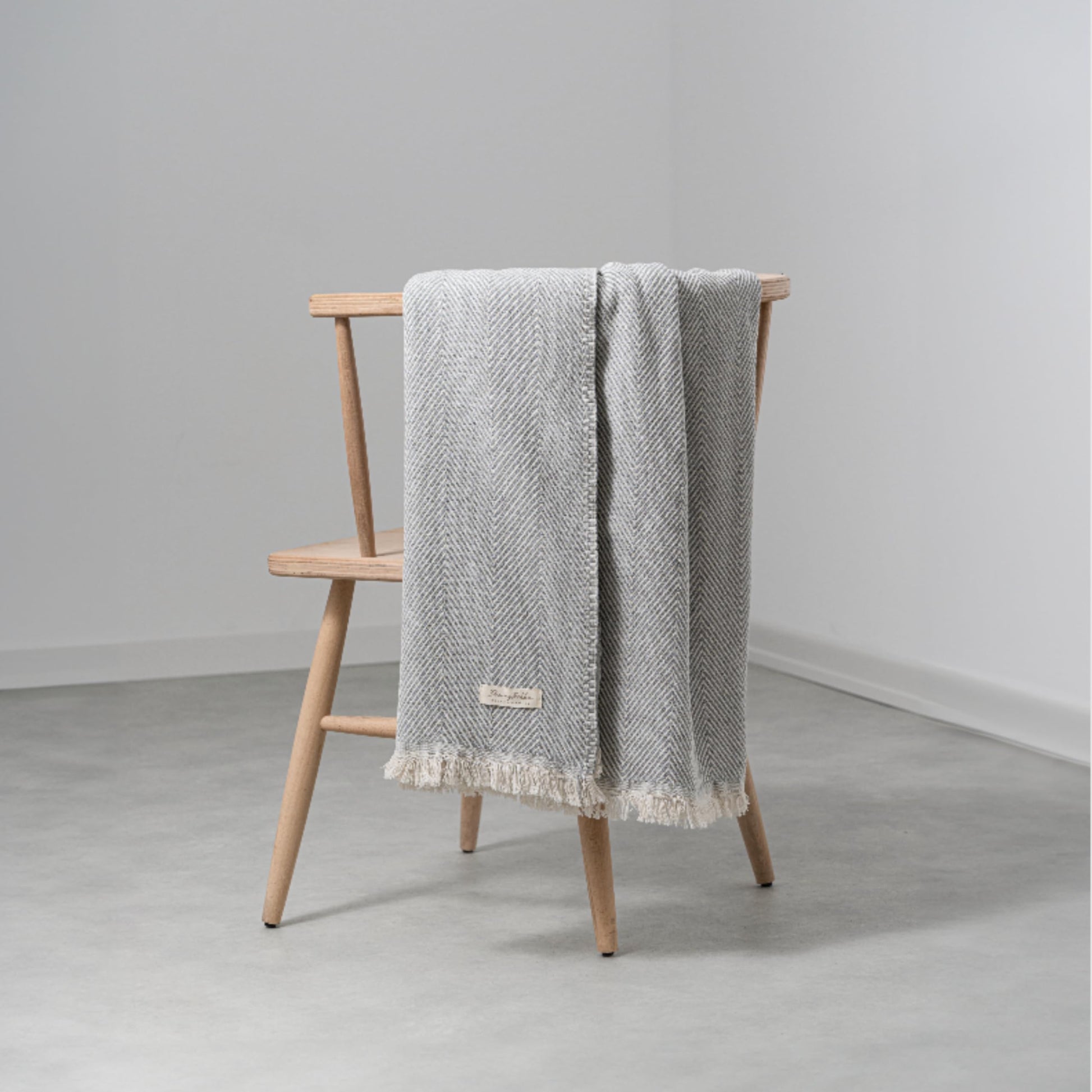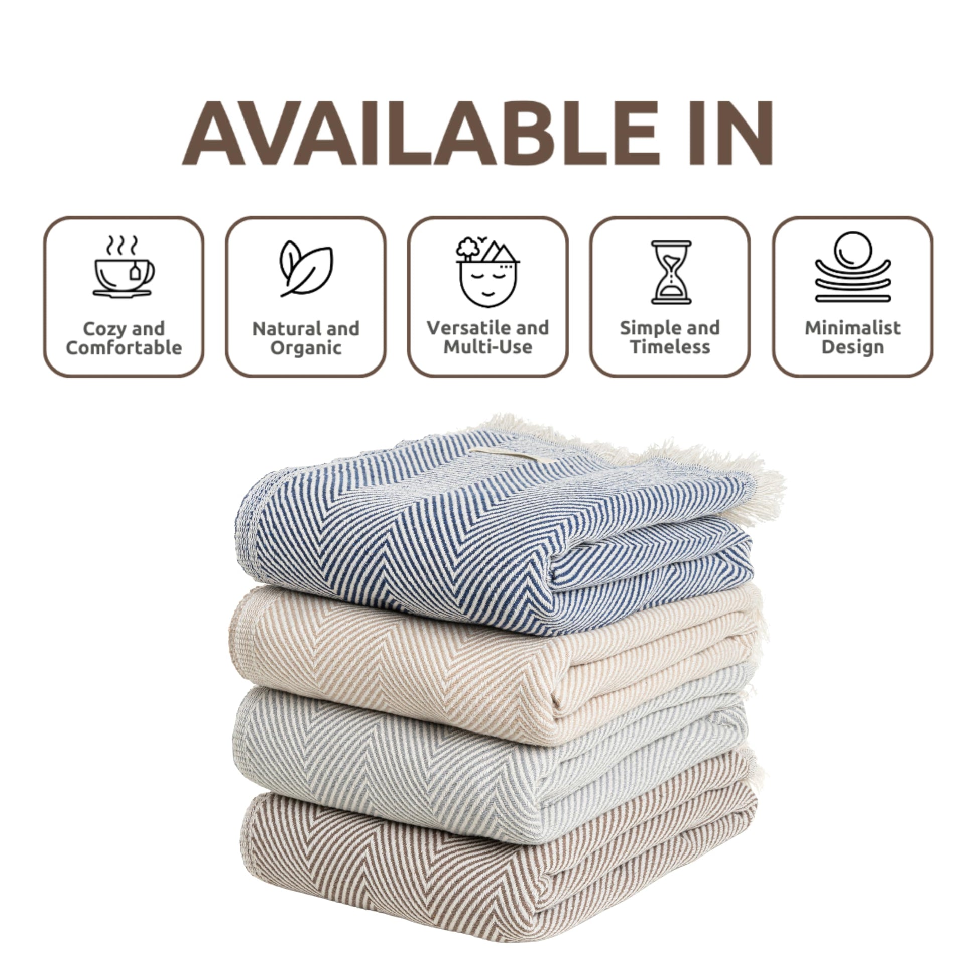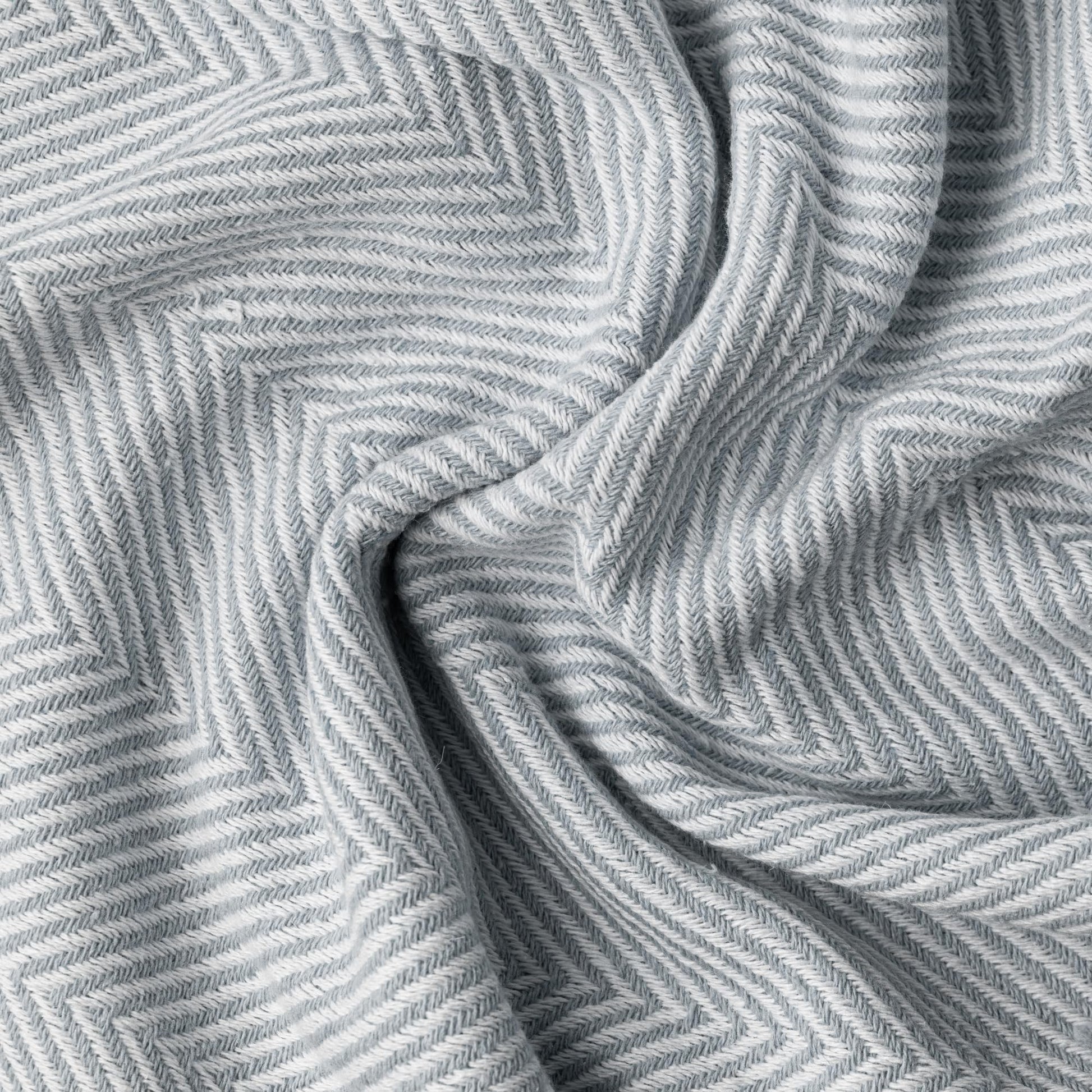 Lightweight Cotton Throw Blanket – Herringbone Chevron Pattern, Boho Farmhouse Decor (Ash Grey, Deep Blue & Brown Options, Twin Size, 57"x79")