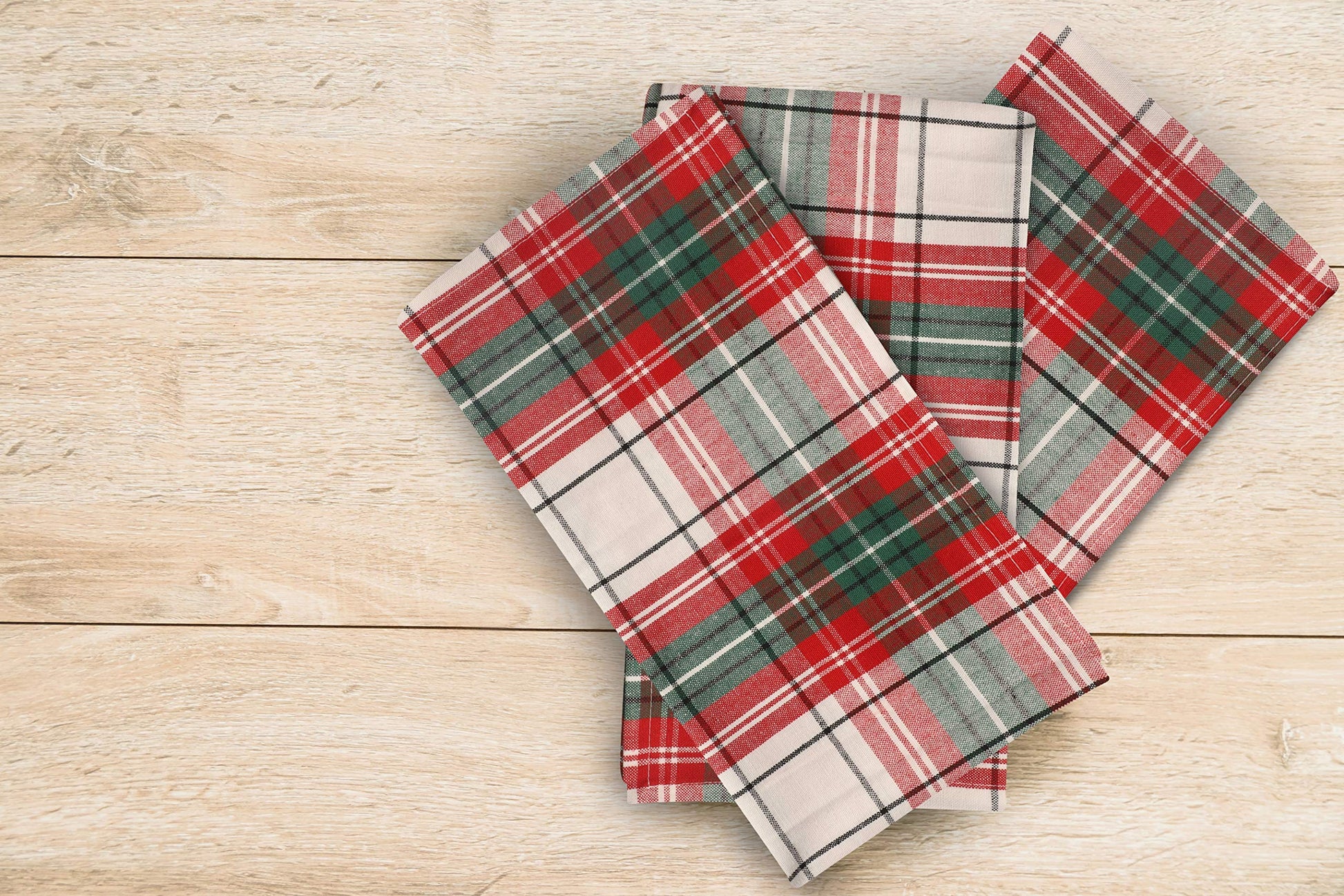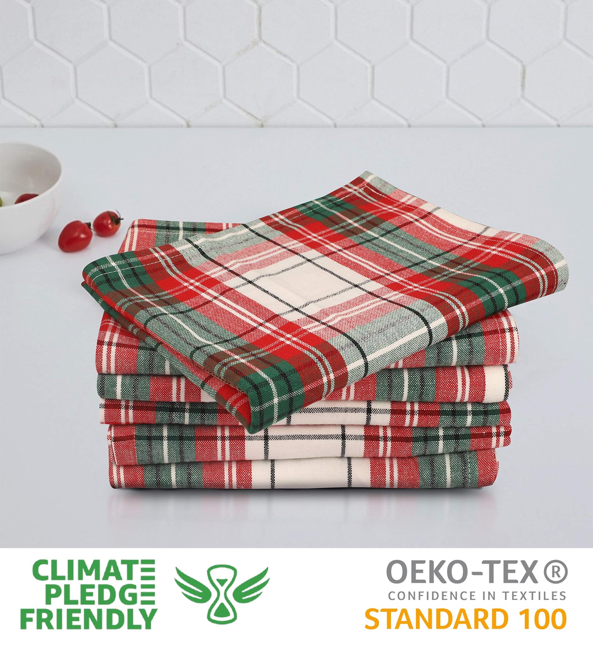 Christmas Check Kitchen Towel Set (6 Pack) – 100% Cotton, Absorbent Dish Cloths with Loop (20"x30")